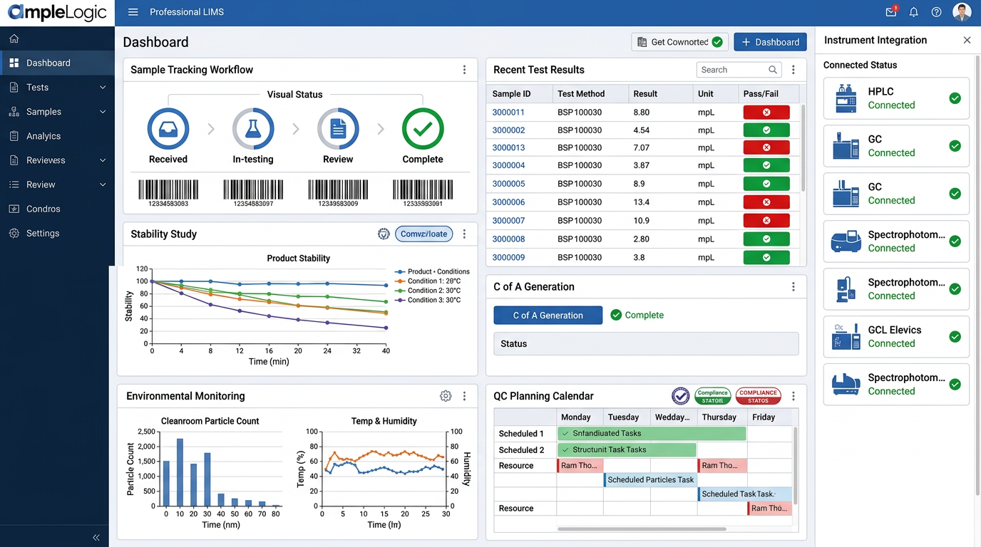 AmpleLogic is an enterprise LIMS platform and cloud-based laboratory information management system that delivers laboratory workflow automation, instrument integration, and regulatory compliance — transforming your laboratory data management system into a source of actionable scientific data analytics. This pharmaceutical LIMS software is purpose-built for pharma, biotech, and regulated life sciences with embedded AI, ISO 17025 compliance, Low Code No Code deployment, and the industry's only integrated digital GxP ecosystem.