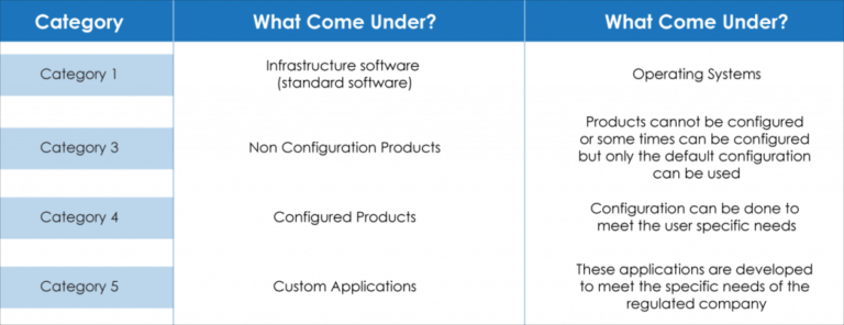 GAMP 5 Categories